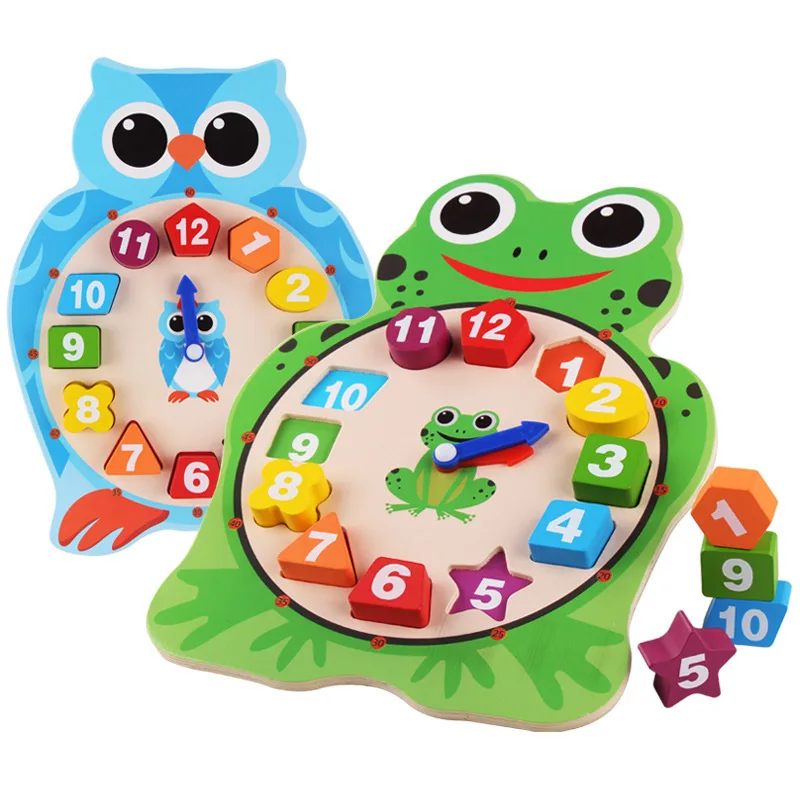 Duo lai Cartoon Animal with Numbers Clock Toy Wood Educational Frog Shape Kindergarten Children Tea